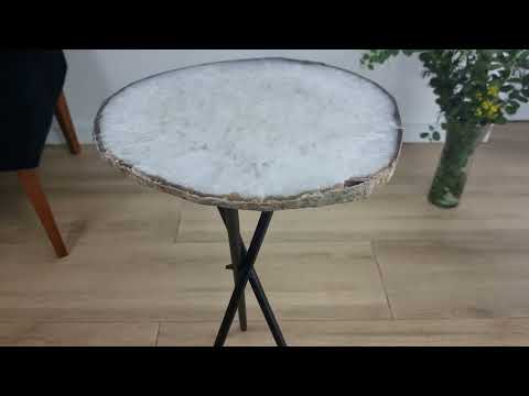We present the power of nature with this magnificent Natural Agate Side Table carefully selected by the BR Crystals team. More than a decorative piece, Agate is known for its energetic properties, transmitting peace, balance, spiritual protection and timeless beauty. Ideal for environments such as living rooms, offices, receptions and meditation spaces, this Agate Side Table transforms any space with its shine and natural magnetism.