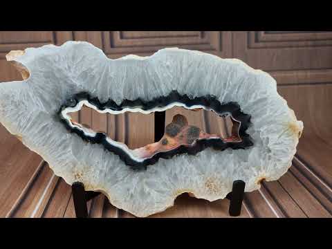 We present the power of nature with this magnificent Natural Agate Special Slice carefully selected by the BR Crystals team. More than a decorative piece, Agate is known for its energetic properties, transmitting peace, balance, spiritual protection and timeless beauty. Ideal for environments such as living rooms, offices, receptions and meditation spaces, this Agate Special Slice transforms any space with its shine and natural magnetism.
